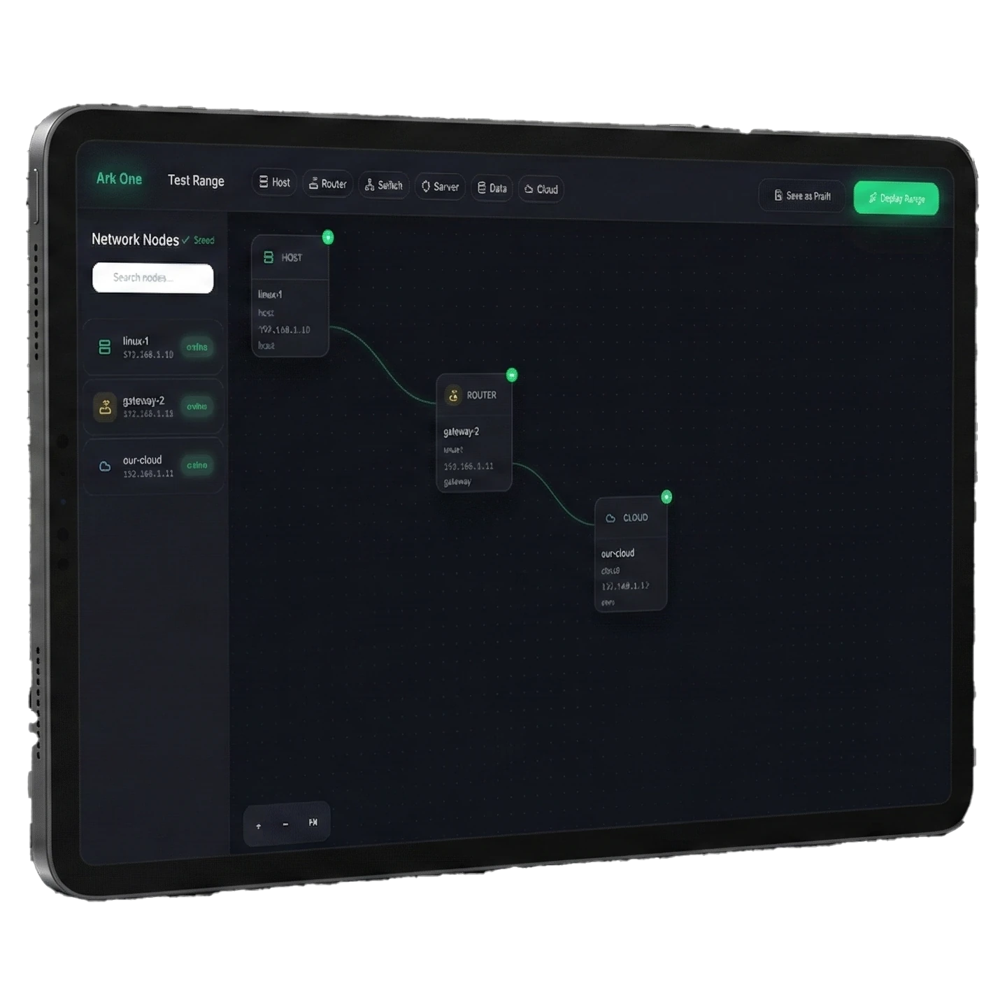 ArkOne is being developed to turn a plain-English description of an operational environment into a fully deployable range with hosts, services, and traffic… in minutes, not weeks.